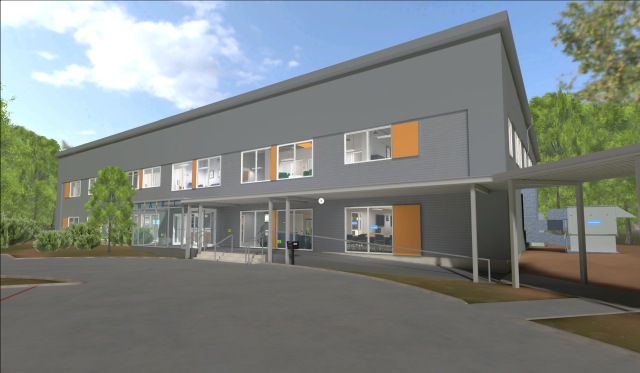 As you walk around, click the blue buttons for narrated highlights (like the building dashboard, geothermal system, and bioswales). Click the green buttons for detailed technical information of our building components and performance.